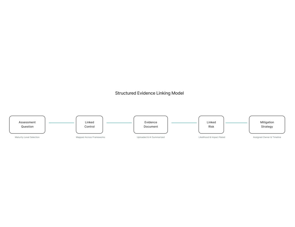Maturity → Assessment → Controls → Evidence → Risk → Audit Readiness