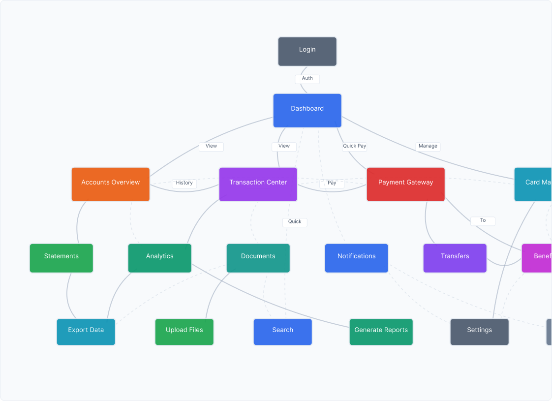 Based on the maps, I proposed a single navigation model and a landing dashboard that surfaces the most-used actions and in-progress items. Labels, groupings, and paths were simplified so users could reach key tasks with fewer clicks.